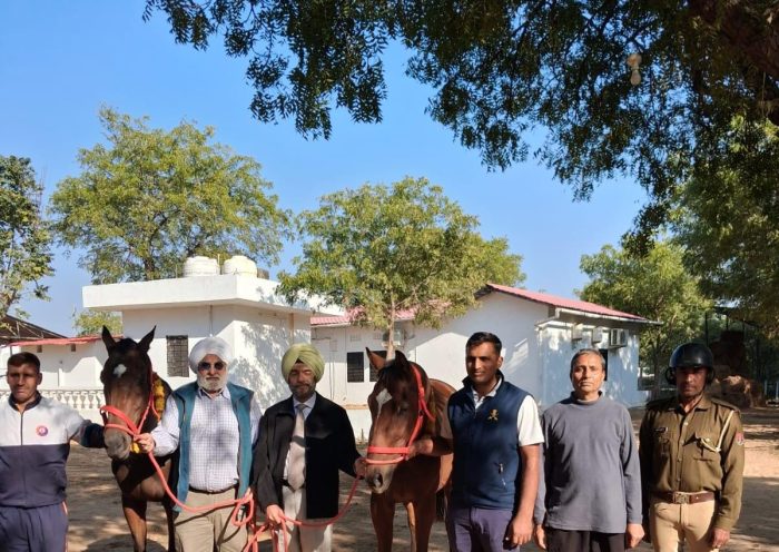 राजस्थान पुलिस की माउंटेड टीम को मिले थौरो ब्रेड के दो घोड़े, डीजीपी ने कर्नल गर्चा को दिया धन्यवाद